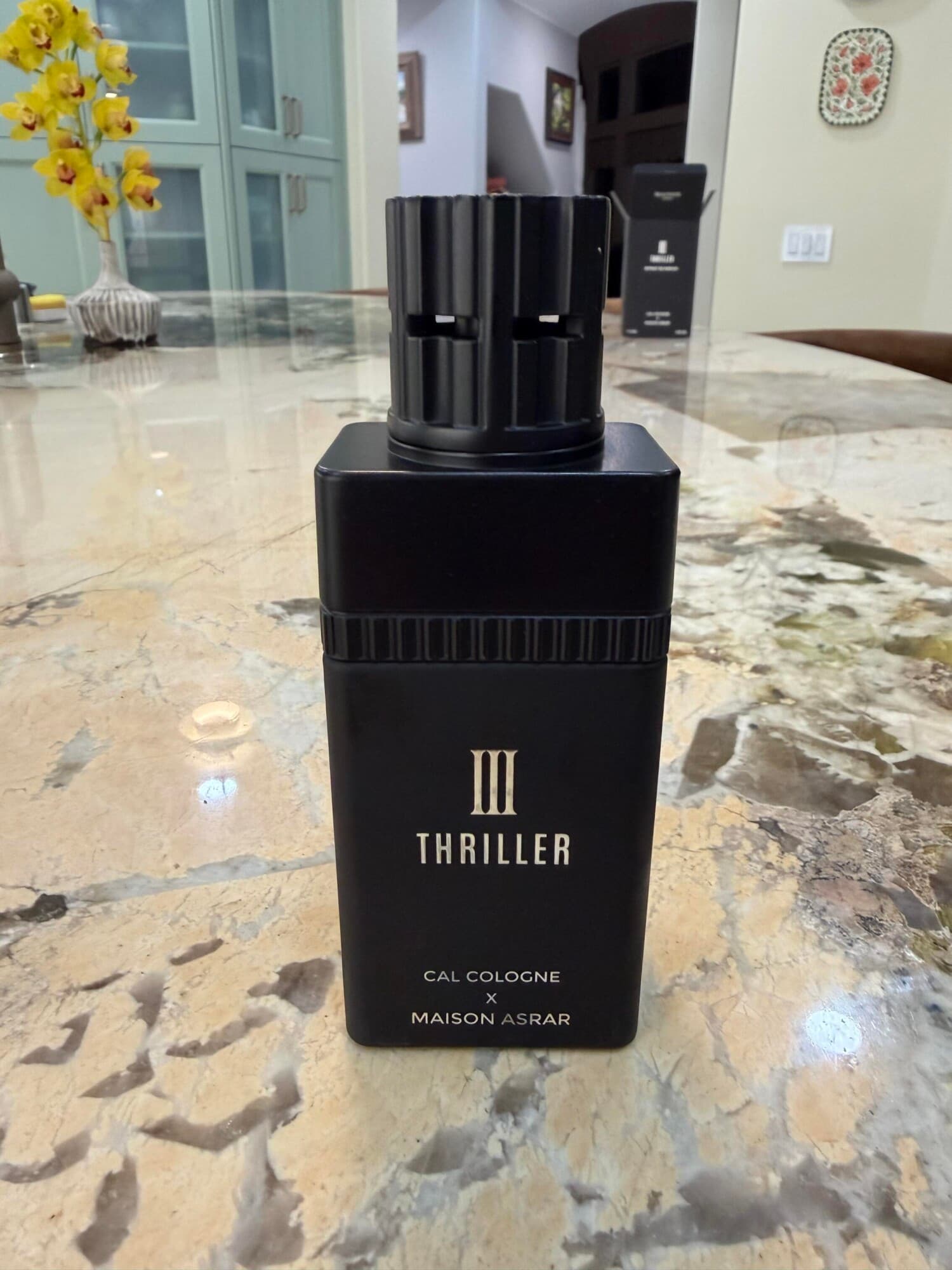 III Thriller by Maison Asrar is an intense oriental woody fragrance built around spice, leather, and warm resins. It opens with a sharp burst of bergamot, saffron, and pepper, creating an energetic and slightly fiery introduction. As it develops, the fragrance leans into a darker heart of smoky incense and rich leather, balanced by tonka bean and labdanum for added warmth and depth. In the dry down, creamy sandalwood, vanilla, amber, and musk take over, giving the scent a smooth yet powerful finish with long-lasting presence. The overall profile is spicy, smoky, and slightly sweet, making it ideal for evenings, colder weather, and anyone wanting a bold, statement-making fragrance.