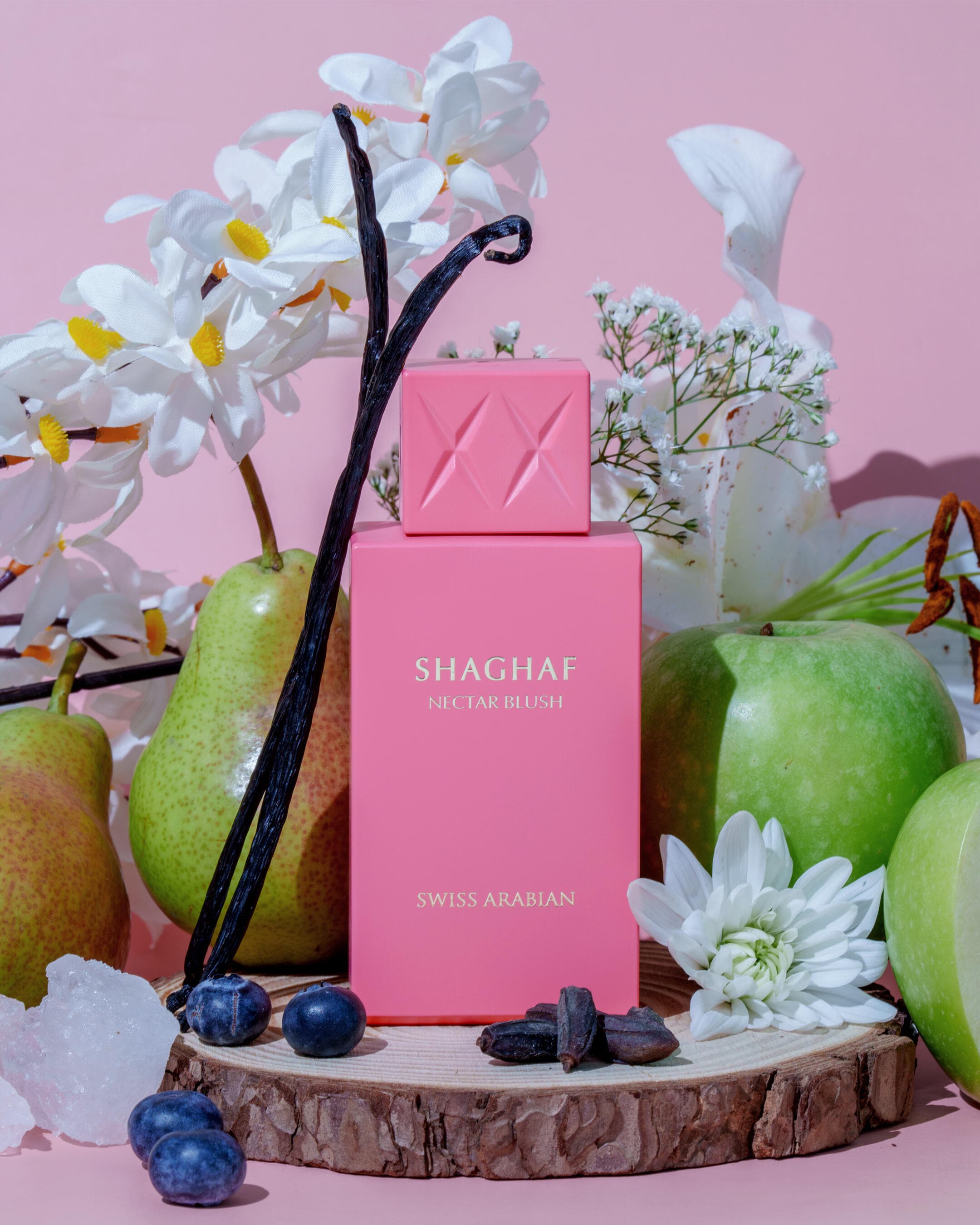 Shaghaf Nectar Blush by Swiss Arabian is a vibrant fruity floral fragrance that blends fresh citrus, juicy fruits, and soft creamy notes. It opens with a bright mix of yuzu, pear, apple, and blackcurrant, creating a fresh, slightly tangy sweetness that feels playful and uplifting. (fragrantica.com) As it develops, the fragrance moves into a soft floral heart with orange blossom and delicate creamy accords, adding a smooth, feminine touch that balances the fruity opening. (fragrantica.com) In the dry down, musk and subtle woody notes create a clean, slightly warm finish that sits comfortably on the skin while maintaining its soft sweetness. (fragrantica.com) The overall scent is fruity, soft, and slightly creamy, making it perfect for spring and summer, daytime wear, or anyone looking for a light, easy-to-love fragrance.